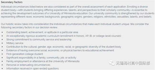 申请明尼苏达大学时审查甄选的因素(数据来源于明大学校官网)