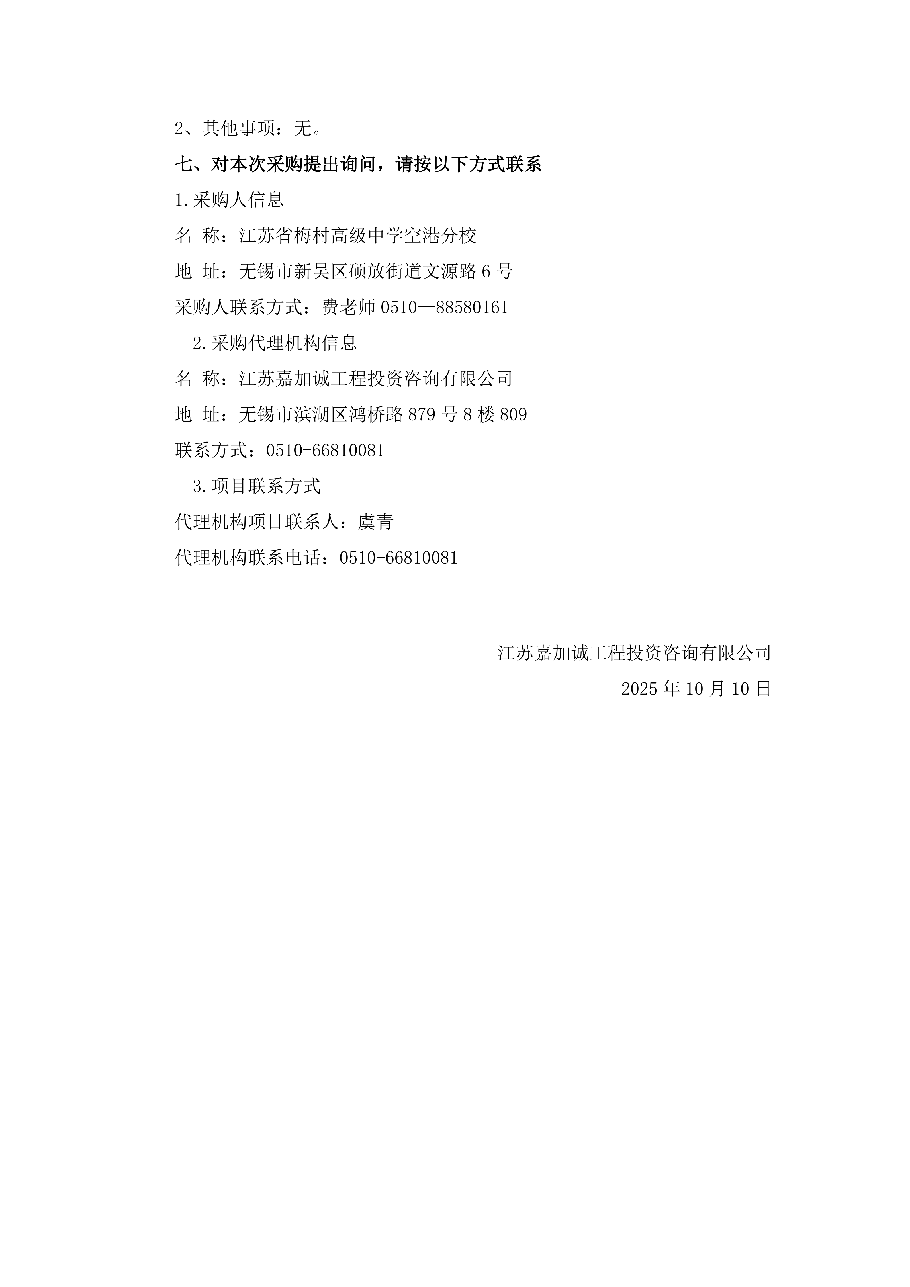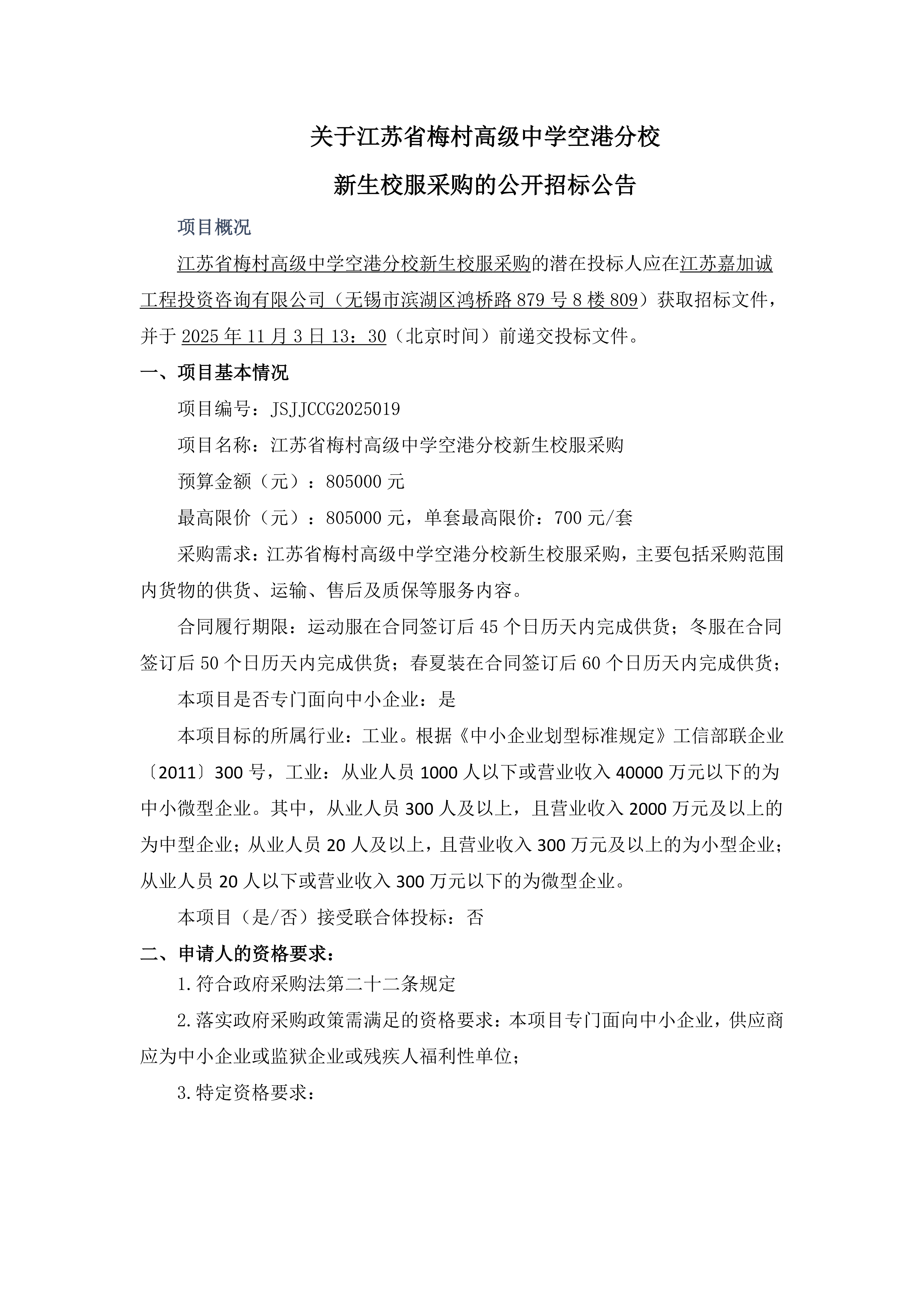 关于江苏省梅村高级中学空港分校新生校服采购的公开招标公告