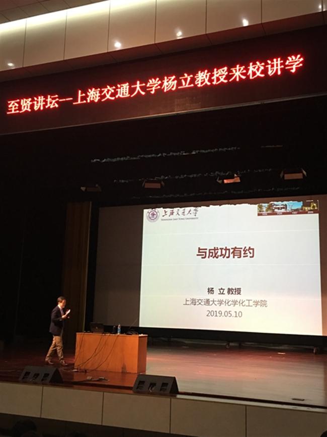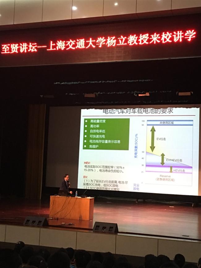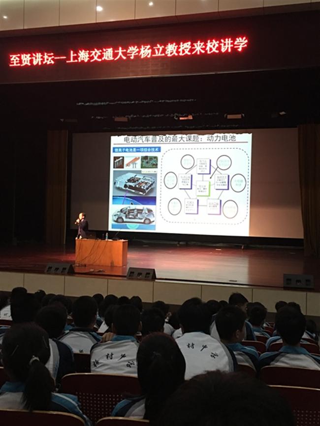 杨立教授是无锡梅村人,现任上海交通大学教学督导、汽车动力电池材料研究所副所长、电化学与能源技术研究所副所长,是首届上海“浦江人才计划”获得者、上海领军人才、全国电池行业特聘科技专家。报告开始前,杨教授播放了上海交通大学的宣传短片,同学们一坐下来就被这所“双一流”名牌大学的魅力吸引住了。