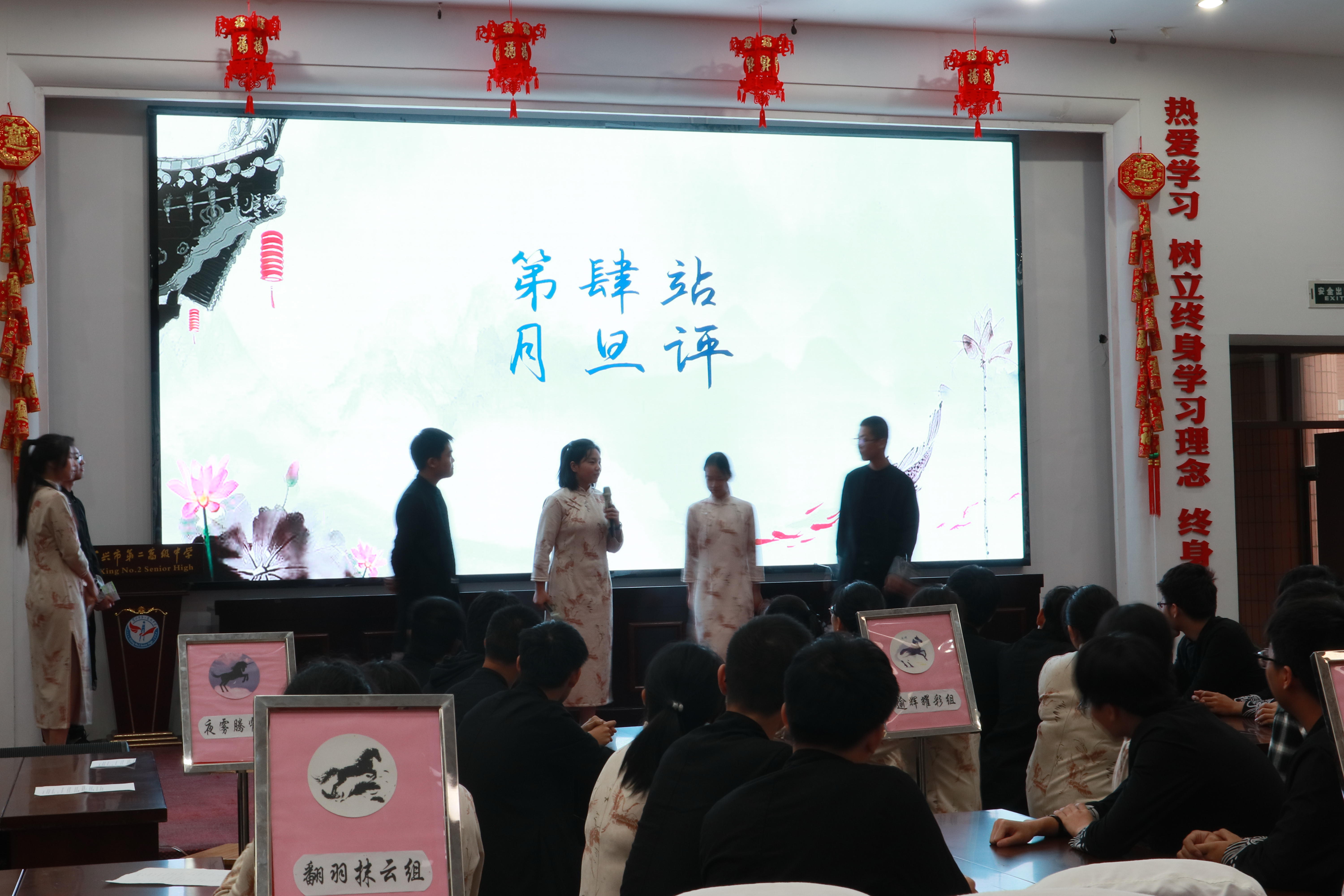 这是高三8班根据本月德育主题,由学生自主策划、组织、主持的一堂班会课。在课堂上高三8班的同学们分成8个小组,以给外国友人做导游的方式,展示了中国优秀传统文化和现代化成就,不仅有小演讲,还有知识竞赛、拼图竞赛、配乐诗朗诵、爱国歌曲演唱以及“高中生应该怎样爱国”的月旦评等活动。