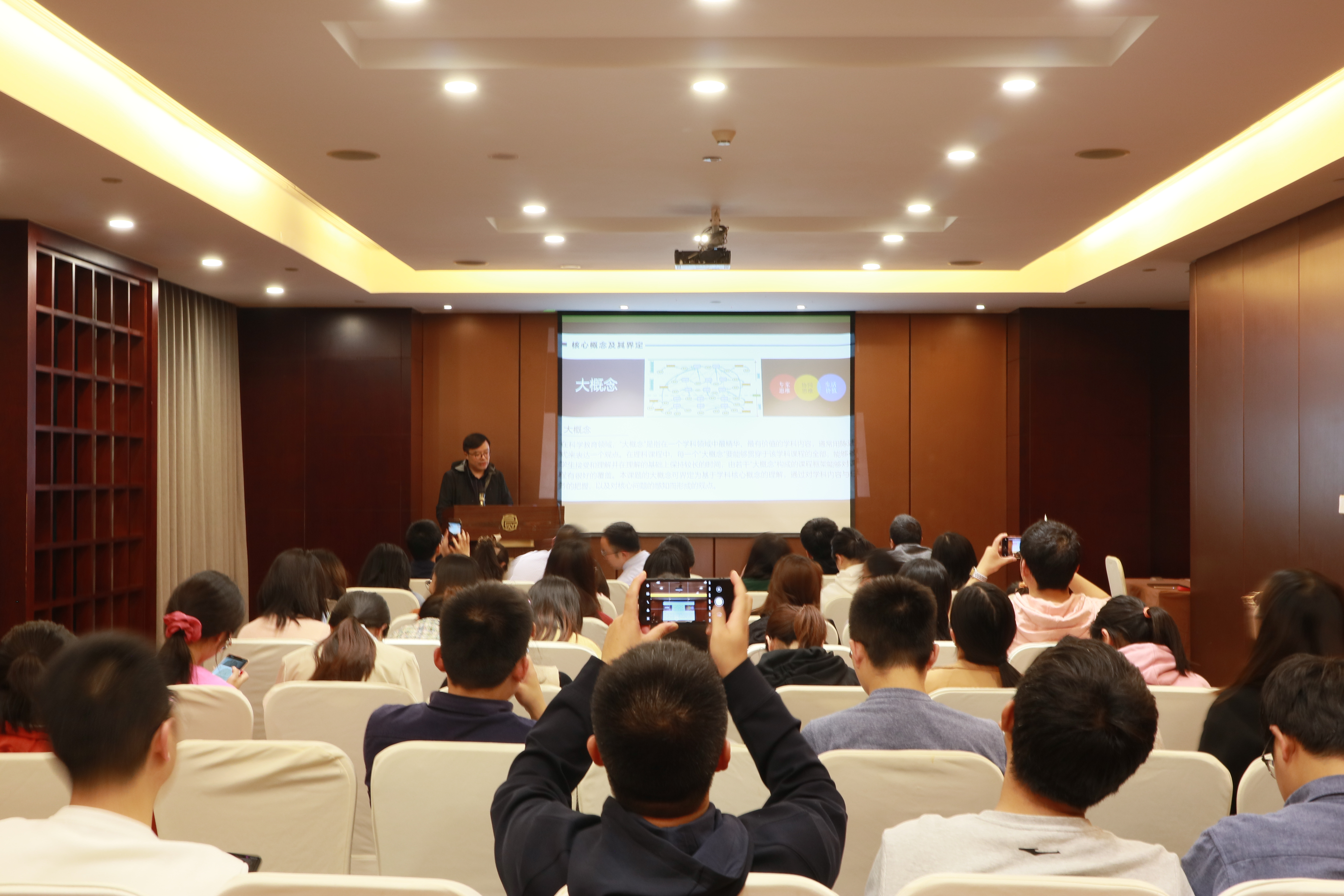 在题为“基于‘大概念’的课堂教学及教研改革”的讲座中,孔副校长从背景与动因、发展结构框架、研究目标、课堂改革的初步操作和不足这几个方面,深入浅出地介绍了江苏省宜兴中学在“大概念”理论引领下通过项目推动学校的教学教研方式变革的过程,通过课堂变革摆脱学生现有的学习困难,在真实情景中形成学习的困境,打破学生现有的平衡,引发学生的认知冲突,进一步引发学生主动学习的欲望,形成自己的学习策略,最终提升学生的学科素养。
