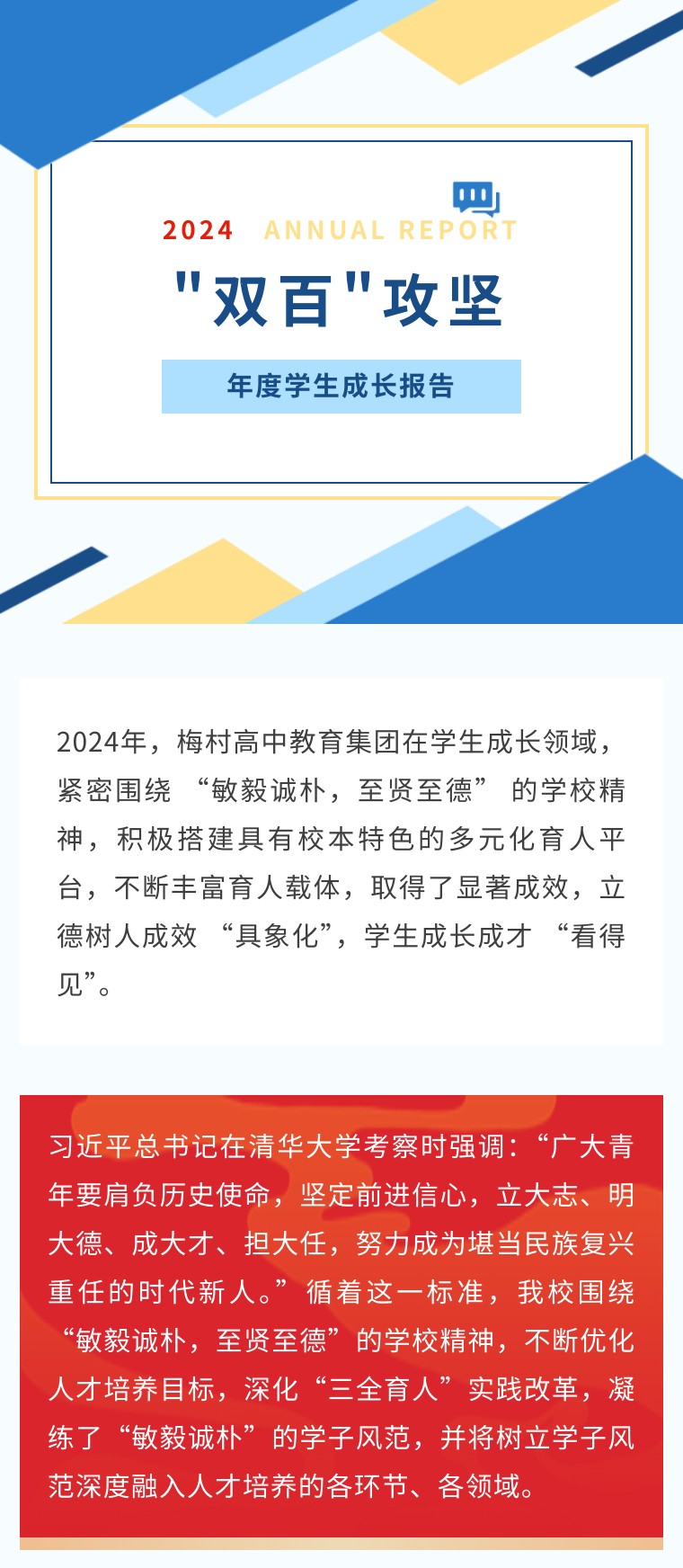 百年梅中,秉承“至贤”校训,弘扬“敏毅诚朴,至贤至德”的学校精神, 厚德载物,励志敏行。始终坚持以“为了师生的生态发展”为办学理念,凸显“至贤教育”品牌,构筑师生幸福家园,不断追求卓 越,引领学生自由、全面发展,收获成功、感受幸福。 欢迎报考百年梅中!百年梅中,助你成功!