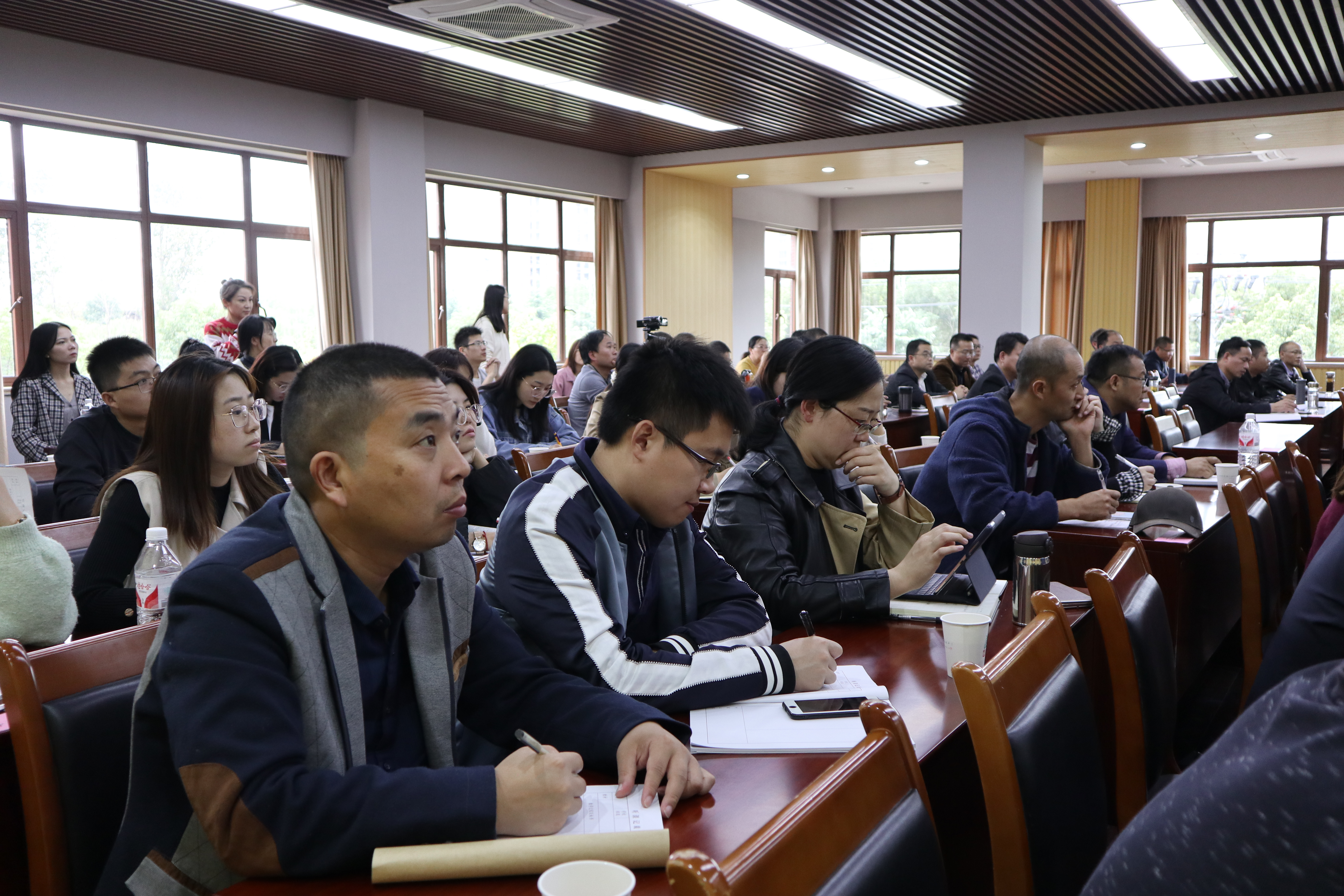 学习之初,教师发展处胡晓军主任进行了《关于课程体系的建构和课程的实施》的专题报告。他首先向我校老师介绍了省锡中学校课程方案的建构过程、课程基地建设情况及成果。胡主任介绍到省锡中把培养生命旺盛、精神高贵、智慧卓越、情感丰满的人作为学校的人才规格标准,如今学校建有“人文”“胡氏三杰自然科学实验”“想像·创造”“巅峰体育”“校园情境综合实践”“云学习”等6个省级课程基地,成为江苏省第一所课程基地全科覆盖的学校。