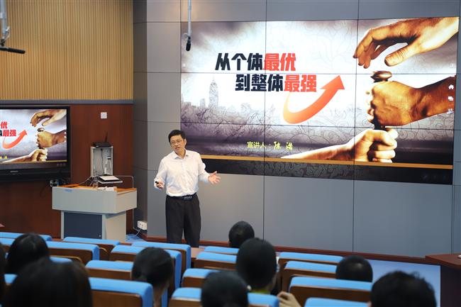 陈浩同志是国网无锡供电公司计量室计量一班的班长,从做一名学徒,到成为拥有国网公司优秀班组长、国网公司十大主讲人、无锡市最美共产党员、无锡市劳动模范等多项荣誉称号的“名匠”,46岁的陈浩用追求极致的专业态度诠释了“工匠之心”。今天,他以《个体最优到整体最强》为题,向梅中青年教师们讲述了他从一名中技毕业的电力仪表工,成长为领衔省级劳模示范创新工作室的计量专家、质量专家的蜕变历程,以及带领班组获得“新中国成立70年新时代最具特色品牌班组”巅峰荣誉的先进事迹。