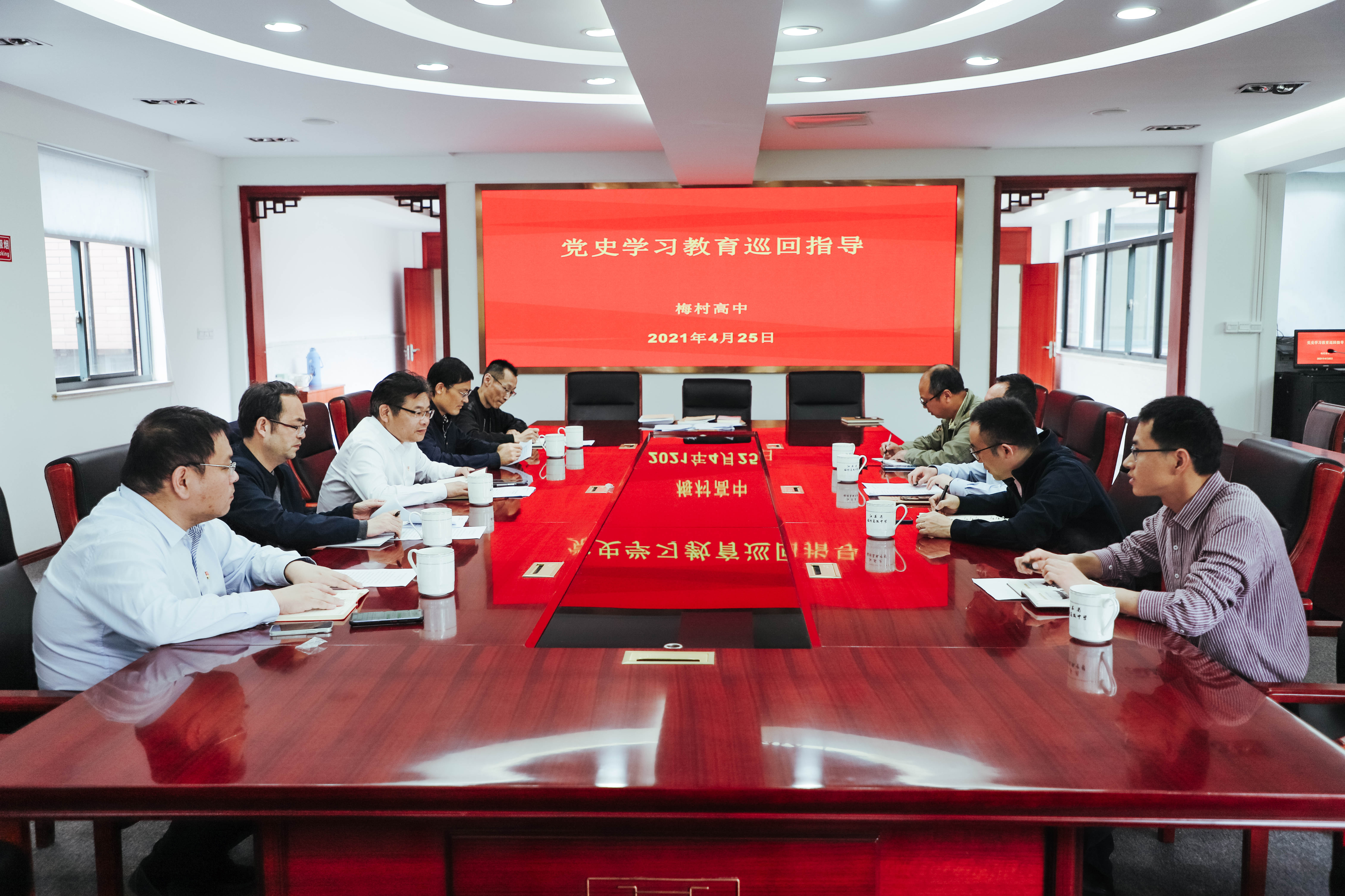 4月25日,市委教育工委党史学习教育巡回指导组莅临我校进行指导,市委教育工委副书记、教育局副局长符菊成带队。学校党委书记华继承就学校党史学习开展情况进行介绍汇报,巡回组现场查阅了我校学习资料和党员学习笔记,并与党支部书记代表进行了座谈。在座谈会中,巡回指导组为我校党史学习教育的开展提出了建设性建议,指出党史学习要结合学校重点工作,深入聚焦,多办实事。