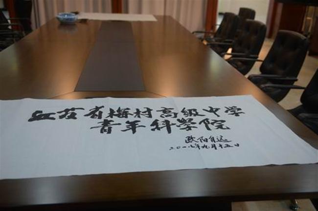 朱益民校长说,梅村高中长期致力于培养有担当、有文化、擅实践、能创新的优秀高中生,所以早在2001年,学校就成立了“江苏省梅村高级中学青年科学院”,为国家发现人才、培养人才、输送人才。欧阳自远院士听至此非常高兴,他说:“一所高中长期坚持培养高素质人才,很了不起,更不容易!”随后,欧阳自远院士欣然受聘担任江苏省梅村高级中学青年科学院名誉院长,并现场题词。