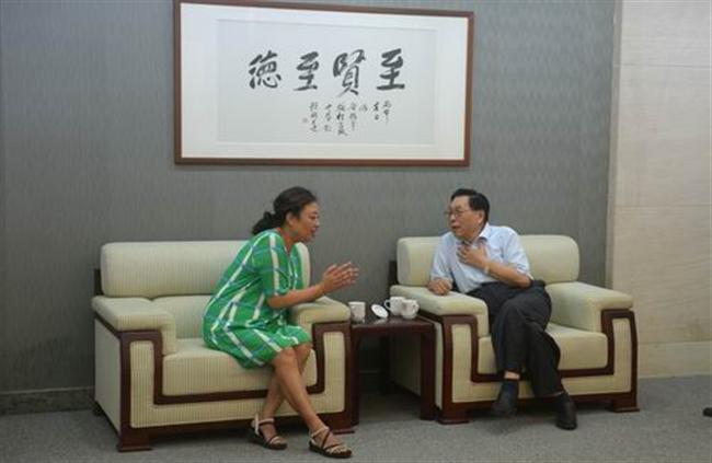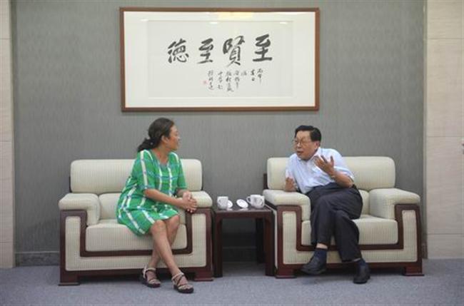 14:30,朱益民校长和欧阳自远院士亲切交谈,欧阳自远院士对“从泰伯庙里长出来”的这样一所百年学府,大加称赞。