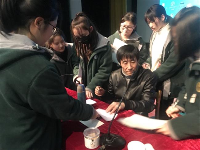 讲座结束后,同学们拿着已有的书籍,甚至是笔记本、一片纸张围着王老师请求签名,一位男生抑制不住地说道:“王老师是我的偶像,我激动得要哭了”。