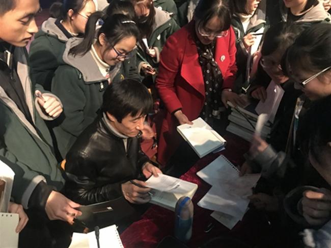 还有一些学生跑回教室拿着书籍气喘吁吁地追赶着正在离去的王老师……。这无不体现着梅中学子对大家的仰慕,对文学的亲近,对文化的渴求。