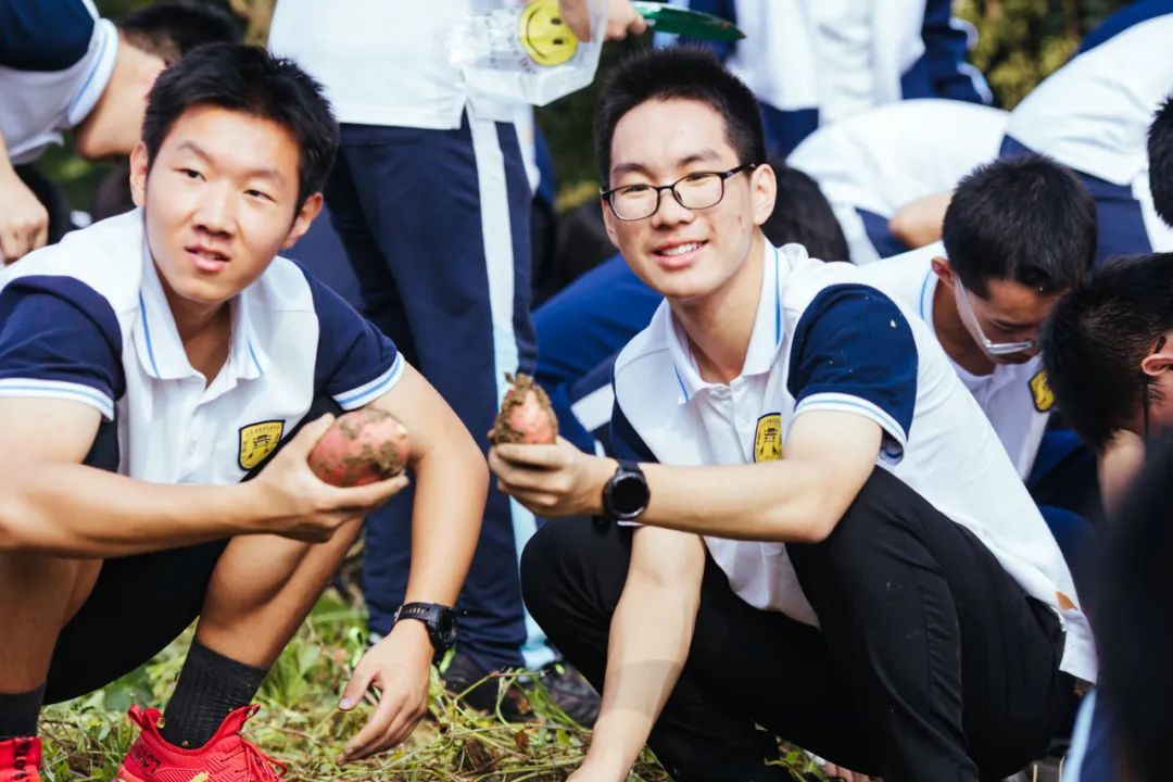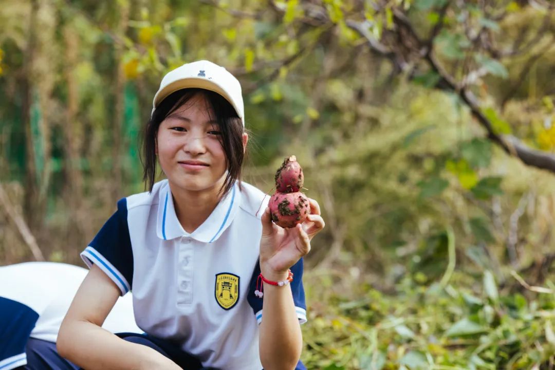 在秋天里寻找丰收,“梅小宝”们在这座丰收的乐园中参与了形式多样的秋收活动,亲手挖红薯、拔萝卜、割稻子,感受劳动的快乐,将劳形与养心融为一体,迎丰收、晒丰收、庆丰收,一幅以土地为“纸”,劳动为“笔”的画卷在梅中学子的手中徐徐展开。
