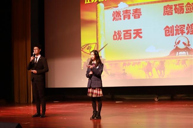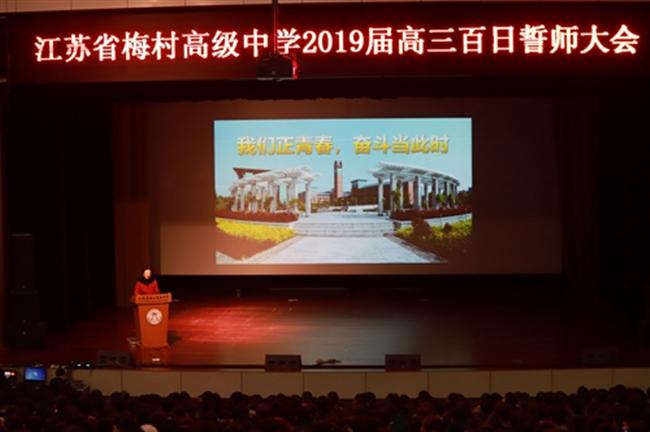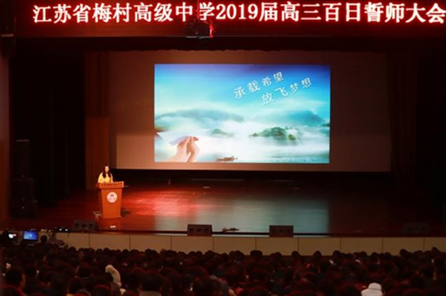 梅村高中2019届高考百日誓师大会27日下午在学生礼堂隆重举行,高三年级的同学、家长和老师一起吹响了激昂的号角。