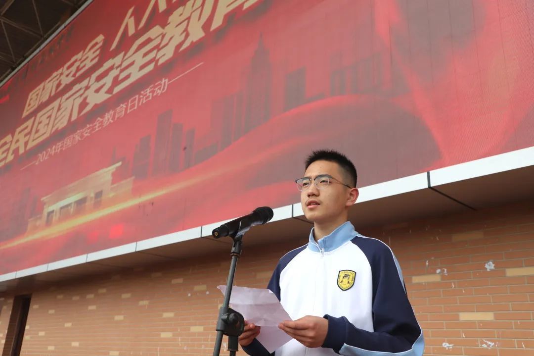 青春筑牢国家防线,担当守护祖国平安。4月15日,在飘扬的红旗下,高一(15)班姜博文同学向全校师生作题为《国家安全,青春挺膺》的国旗下讲话。