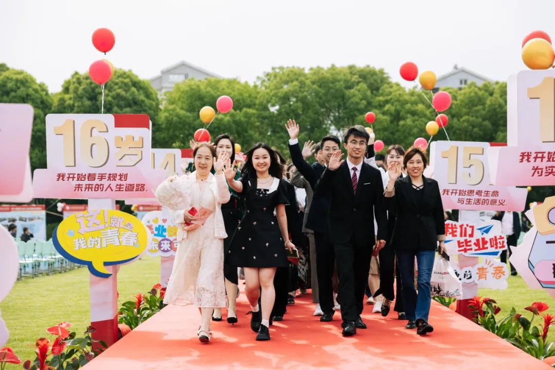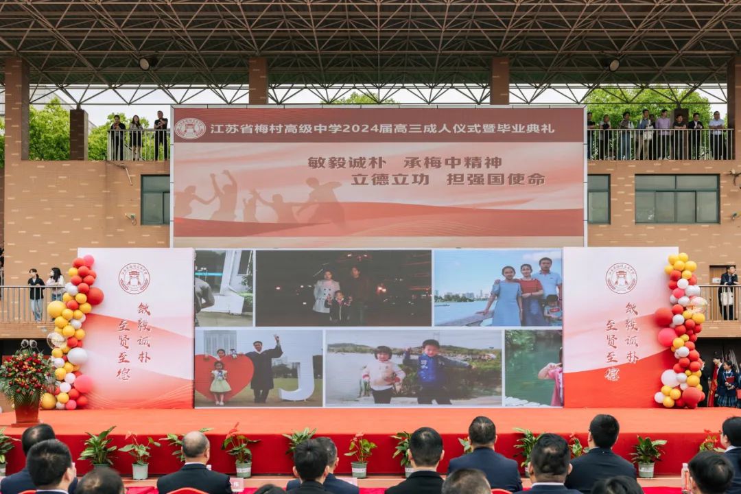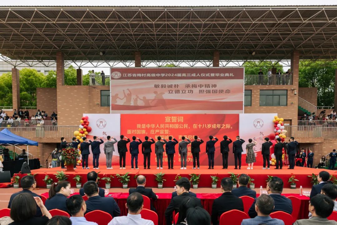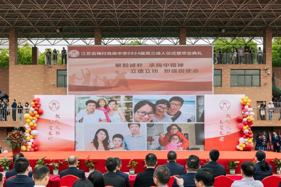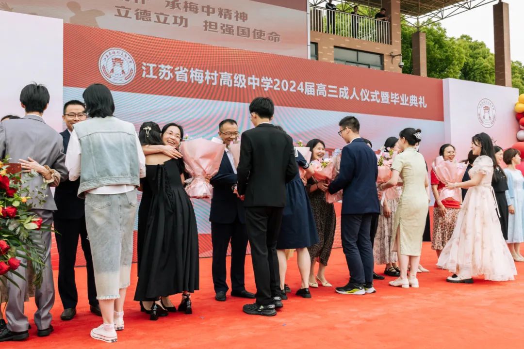 5月12日上午,江苏省梅村高级中学隆重举行2024届高三“成人仪式暨毕业典礼”。全体高三学生携父母穿过“香花桥”,走过“至贤门”,一起踏上红毯,迈入十八岁的舞台。