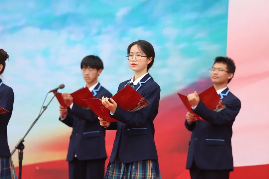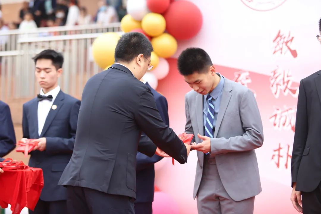 王金伟副校长、尤裕副校长为高三学子颁发《中华人民共和国宪法》和《毕业证书》,希望同学们拥有远大理想,培养家国情怀,敏毅诚朴,承梅中精神,立德立功,担强国使命。