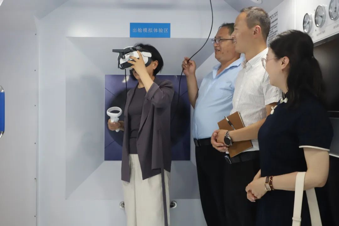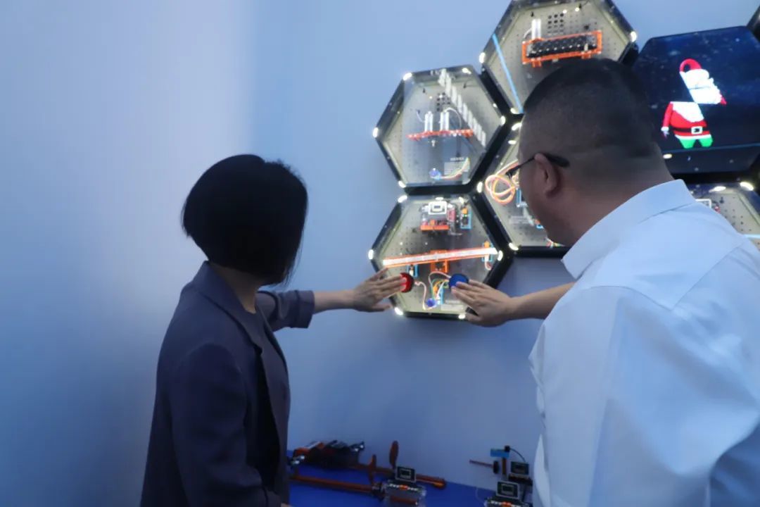 章建锋校长带领海东教育代表团一行参观了学校STEM体验课程基地、航天工程体验中心、自主开源人工智能课程基地,介绍了学校近几年在五育融合、工程教育和科学教育场域开发、拔尖创新人才培养方面的教学改革和育人经验。