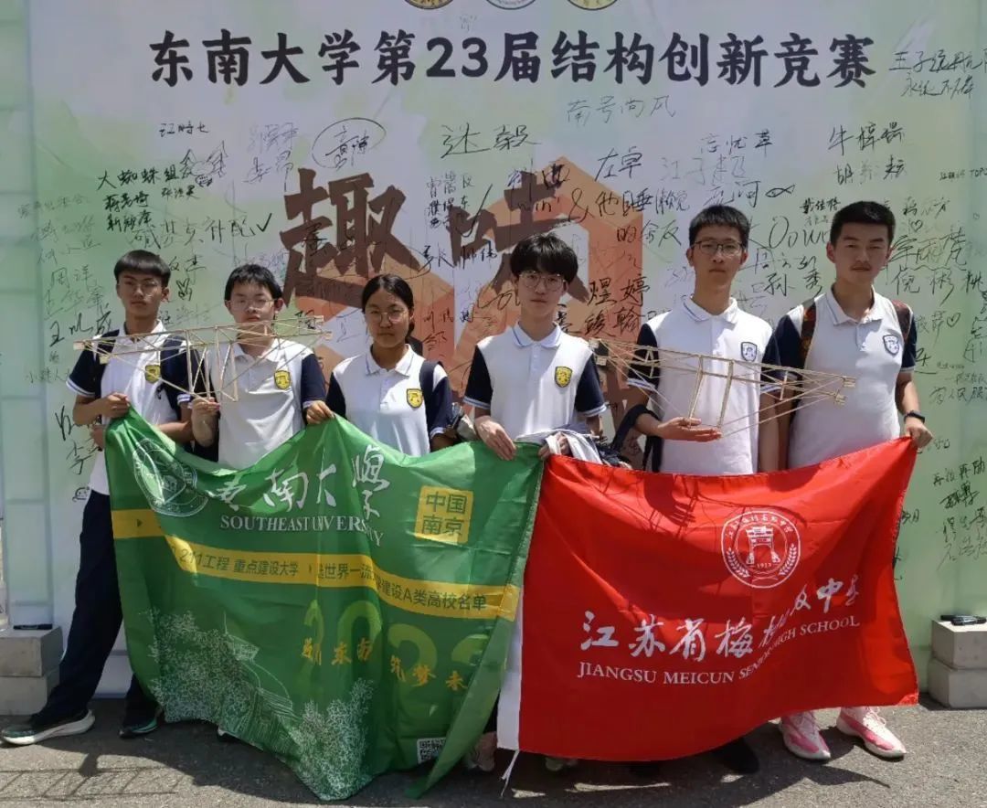 在东南大学主办土木工程学院承办的“第二十三届东南大学结构创新竞赛”活动,梅村高中代表队的6位同学在近600支队伍中以得分第一名和第二名的优异成绩双双获得一等奖。