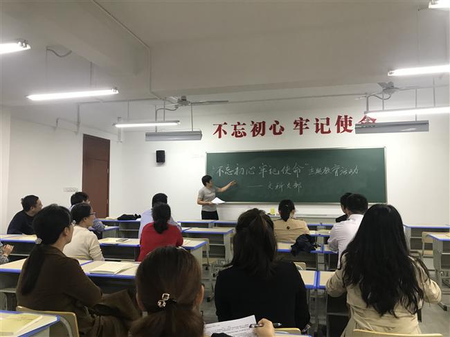 各支部书记带领党员重温了对“初心”和“使命”的领悟,要求全体党员不忘“为人民服务”的初心,牢记“为中国人民谋幸福,为中华民族谋复兴”的使命,加强理论学习,原原本本通读《习近平关于“不忘初心、牢记使命”论述摘编》《习近平新时代中国特色社会主义思想学习纲要》《习近平新时代中国特色社会主义思想三十讲》等配套教材,认真学习应知应会知识,增强党的意识,坚定理想信念。