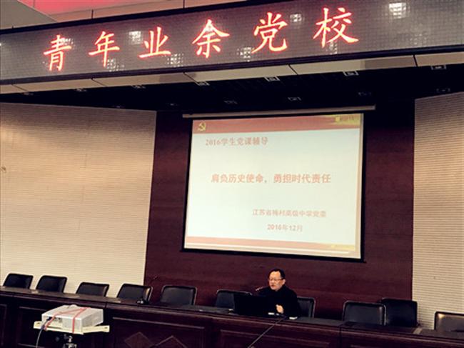 本期业余党校通过集中学习、讨论交流、社区志愿服务等形式对近百名学生入党积极分子开展党课培训。高一党支部书记胡志新老师、高二党支部书记王保卫老师分别从提升自身素养及树立远大理想的角度作了题为《时代的召唤》、《青年的梦想》的主题报告,使学生对于时代的发展以及自己肩负的历史使命与社会责任有了较为明确的认识和真切的感悟。