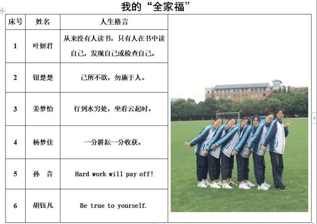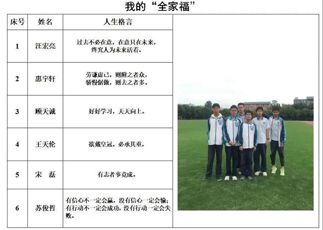 在宿舍这个温馨的大家庭中,每位成员都是家的一份子。为加强学生对宿舍的归属感和认同感,增进同学间友谊,宿舍文化创建的第二项活动决定以宿舍为单位,拍摄亦或规矩、亦或搞怪的“全家福”,加之宿舍成员的座右铭,组成“我的‘全家福’”板块。实现共性与个性的结合,既展现宿舍集体面貌,又展示宿舍成员个人风采。